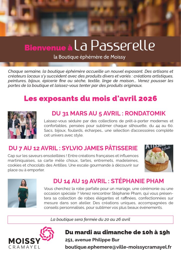 Renseignements au 01 64 88 16 05 ou à boutique.ephemere@ville-moissycramayel.fr