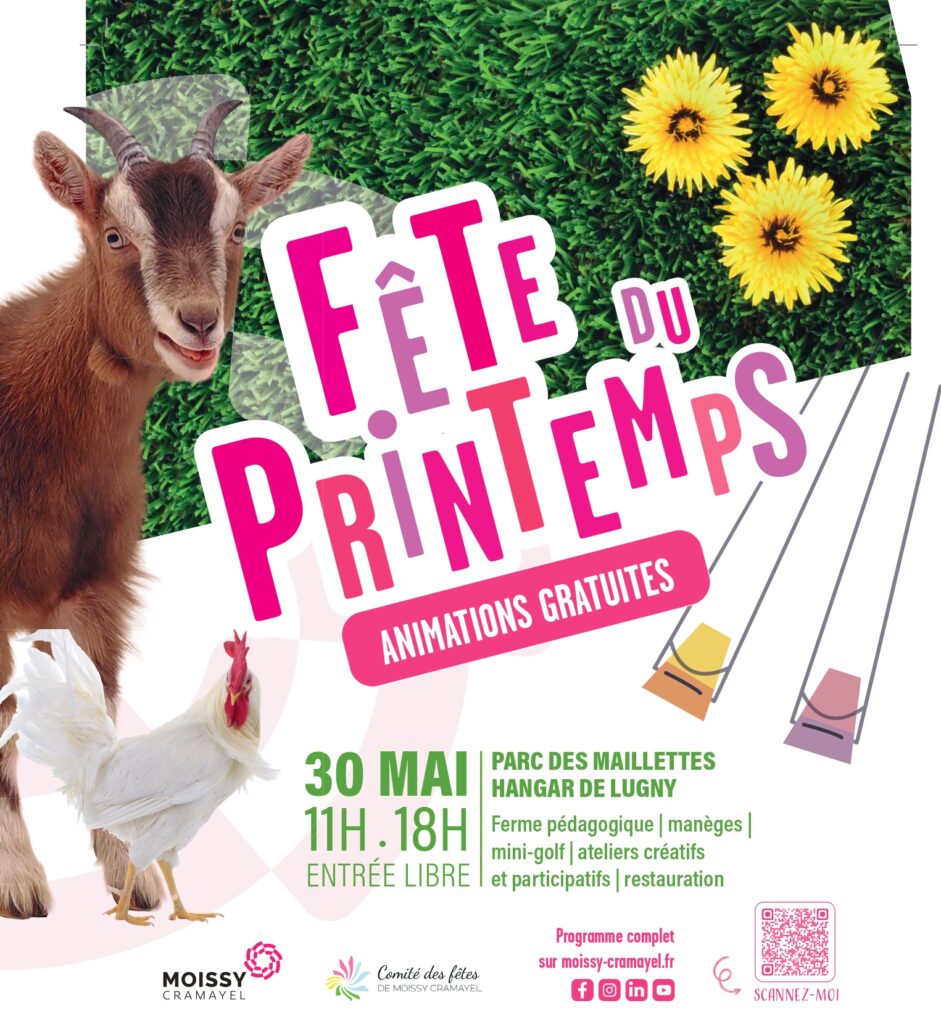 Samedi 30 mai, au cœur du parc des Maillettes, le printemps se fête. La Ville et le Comité des fêtes invitent petits et grands à une journée rythmée par les animations gratuites et les découvertes au grand air, au plus près de la nature.